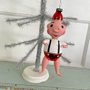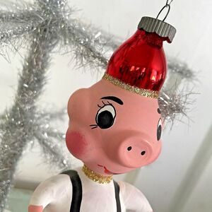 Vintage Christmas Blown Glass PIG Ornament de Carlini (?) Italy