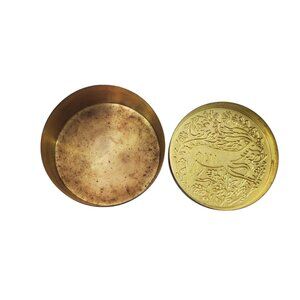 Vintage Christmas Brass Enamel Cloisonne Trinket Stash Box Intricate Deer Design