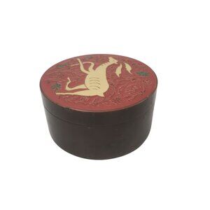 In a distant land where artisans breathe life into their creations, this handcrafted trinket box emerges from Thailand. Adorned with a graceful deer motif on its lid, it captures the essence of nature and artistry.