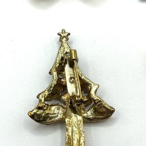 Vintage Christmas Brooch 5 Holly & Jingle Bells Santa Reindeer Tree Pin Lot