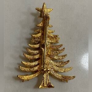 Vintage Christmas Tree Rhinestone brooch pin gold tone Signed Rafael ?