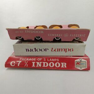 This is a set of 3 vintage Christmas lamp sets in their original boxes from the 1970s. Manufactured by GE, Woolworths, and Kmart, these lights are perfect for adding a nostalgic touch to your holiday decor. Made in the United States during the 1970s, these collectible bulbs are a unique piece of Christmas history that will surely bring a touch of retro charm to your holiday celebrations.