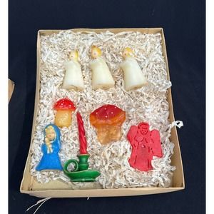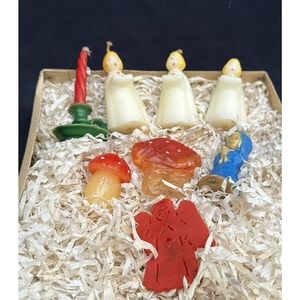 Vintage Christmas CANDLE LOT GURLEY TAVERN Mushroom FIGURE Cute! In Box 6c