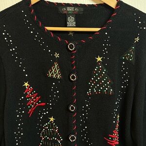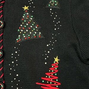 Tags: Christmas, holiday, sweater, embellished, beaded, embroidered, party, vintage, Christmas trees, wreath, art to wear