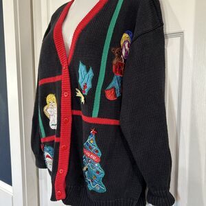 * Vintage Christmas Cardigan Sweater Plus Size 2X Work in Progress Gladys Bagley