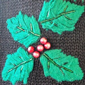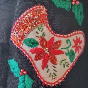 Vintage Christmas Cardigan Sweater With Embroidered Stockings & Holly