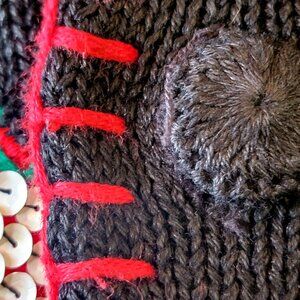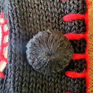 This vintage cardigan features intricate embroidered holiday stockings and holly accents, crafted with attention to detail. Its button-up style combines festive design with functionality. Vtg christmas, grammacore, cottagecore, 90s, ytk