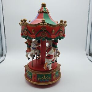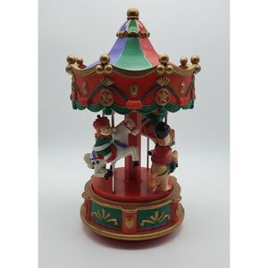 Vintage Christmas Carousel Lights Musical Horses Santa Bear Battery Operated