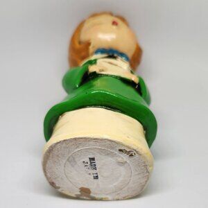 Vintage Christmas Chalk Ware Caroler Green Smock Made in Japan New in Box