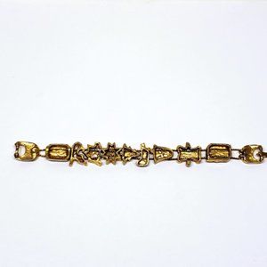 Vintage Christmas Charm Bracelet Enamel Two Chain Gold Tone Bear Poinsettia 7"