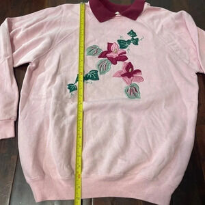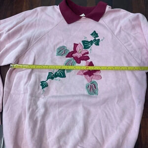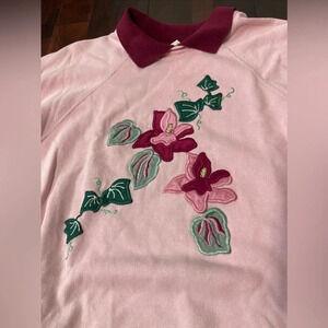 Vintage Christmas Collared Poinsettias Embroidered Pink Ugly Christmas Sweater