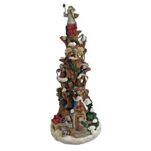 This Vintage Christmas Mouse Tree Decor is a charming Yule Tree standing at 10 inches tall featuring a festive multicolor design. The tree is adorned with mice, garland and light strings that light up and play a tune, adding a touch of nostalgia to any room during the holiday season. Perfect for collectors or those looking to add a unique and whimsical accent to their Christmas decor This piece is sure to bring joy and captures the essence of Christmas music and nostalgia.