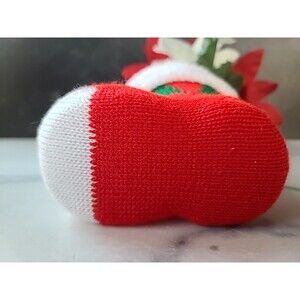 Vintage Christmas Decor Santa Boot With Faux Poinsettia Flowers
