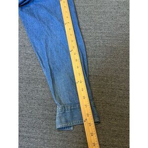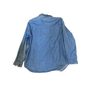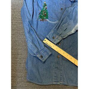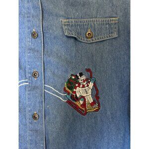 Vintage Christmas Denim Button Down Shirt Embroidered long Sleeve, Size L