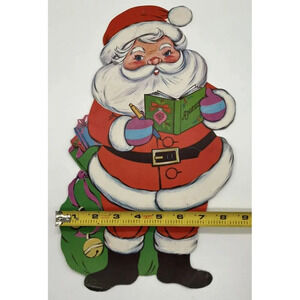 Vintage Christmas Die Cut Out Cardboard Santa Claus Book Pen Toy Sack Wall Decor. Measurements photographed. Ships quickly