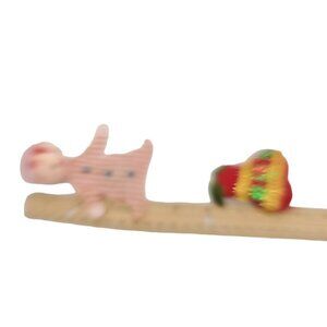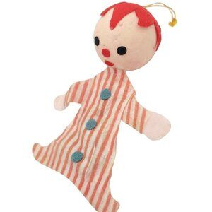 Vintage Christmas Elf & Flocked Pear 1960s Christmas Ornaments Handmade Red