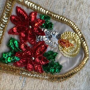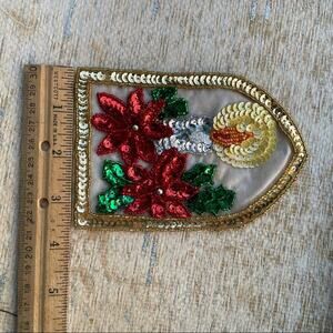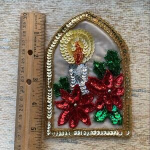 Vintage Christmas Embellishment Sequin Patch Candle Poinsetta