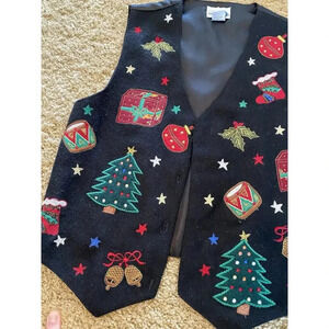 Vintage Christmas Embroidered Vest Wool Paul Harris Women's Size Small India