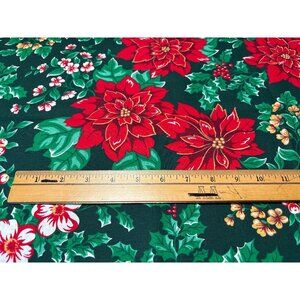 Vintage Christmas Fabric Country Red & Green Poinsettias & Holly Cotton Material