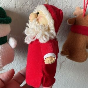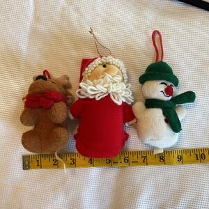 Vintage Christmas Fabric Ornaments Snow man Santa and Reindeer
