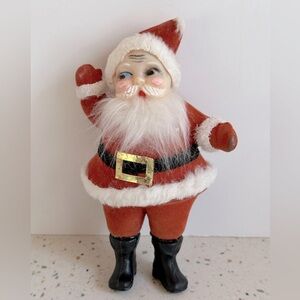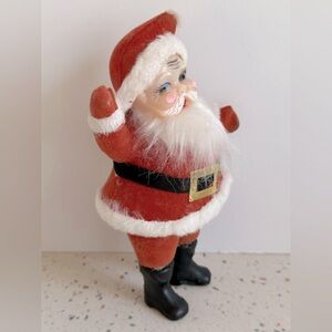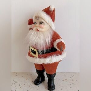 Vintage Christmas Flocked Santa Clause & Mrs. Clause Plastic Figurines Set of 2