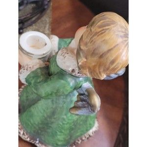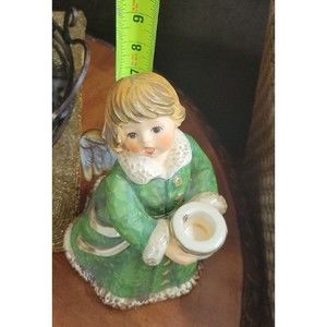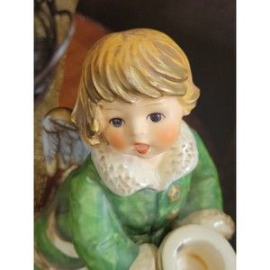 Vintage GOEBEL Hummel Frobek ANGEL Germany Figurine Candleholder Green Gold