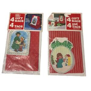 Vintage Christmas Gift Bags Tags 1984 Lot Of 4 Jeanmarie Creations New Old Stock