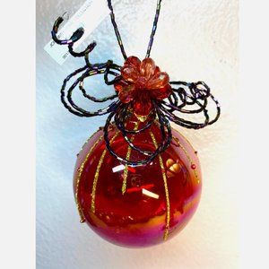 Vintage Christmas Glass Ornaments Red Teardrop Round W Beads Decor Set of 2 NWT