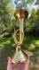 Shiny gold brass bugle horn candlestick with a classic design. Some minor wear / discoloration consistent with age. 8.5” tall 3.5” wide at base approximately.