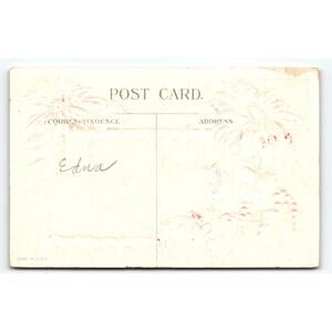 Vintage Christmas Greeting Postcard with Poinsettias and Snowy Church Scene