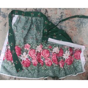 Vintage Christmas Half Apron/Green with Holly & Berries and Christmas Roses