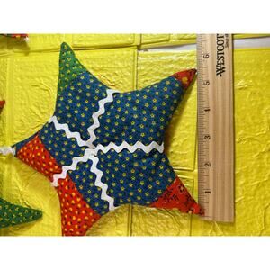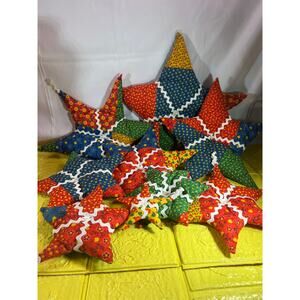 Vintage Christmas Hand Sewn Cloth Fabric Stuffed Star Ornaments Tree Set 11