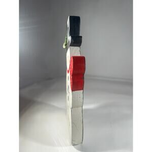 Vintage Christmas Handpainted Folk Snowman Wooden Decor featuring Let It Snow. Original vintage—no reproduction—with charming rustic design in good condition. Perfect for holiday displays or collectors!
