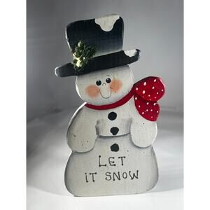 Vintage Christmas Handpainted Folk Snowman Let It Snow Wooden Decor