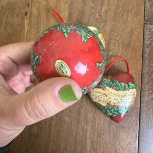 Vintage Christmas Heart Ornaments Old World Victorian Music Paper Mache