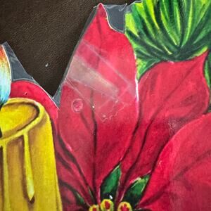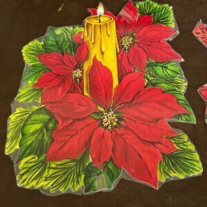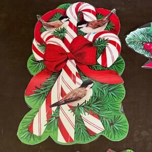 Vintage Christmas Holiday 4 Cut Outs Bell Candy Cane Poinsettia Bird Candle USA
