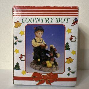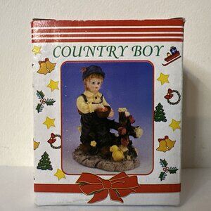 Vintage Christmas Holiday Country Boy Figurine 3.5" Resin By Kingsbridge Int NEW