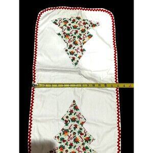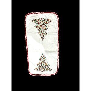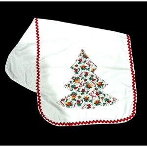 Vintage Christmas Holiday Table Runner White Appliqué Christmas Tree 14” x 28”