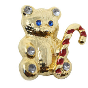 * Special Feature: Vintage Teddy Bear Pin is holding a sweet candy cane ready for the holidays :) He has blue rhinestone eyes and clear rhinestones on each paw.