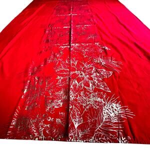 Vintage Christmas Holiday tablecloth buffet size rectangle red with gold leaves