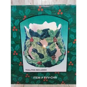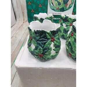 Vintage Christmas Holly Porcelain Votive Holders Set Of 6 Tealites Not Included