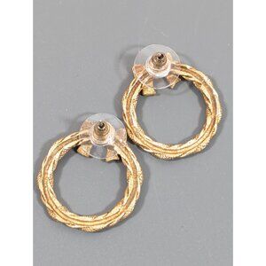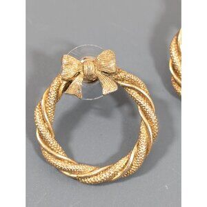 Vintage Christmas Hoop Earrings Gold Tone Rope Hoop Bow Pierced