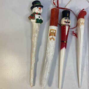 Vintage Christmas Icicle Ornament Santa Snowman Soldier Hanging Lot Of 8