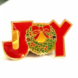 Vintage Christmas JOY Wreath Holly Tie Tac Lapel Pin Brooch Enamel Red Green