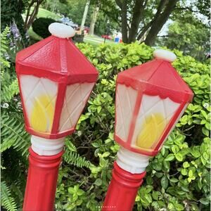 Vintage Christmas Lamp Post Blow Molds Red Empire 1969 PAIR