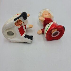 Vintage Christmas Lefton Santa Mrs Claus Salt Pepper Shaker Candle Huggers