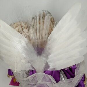 This vintage Christmas lighted tree top angel is a beautiful addition to any holiday decor. Made of fabric in a colorful design, this collectible piece from the 2000s comes in its original box and exudes a festive charm perfect for Christmas. The tree top angel, manufactured by Dreams & Treasures, adds a touch of nostalgia and elegance to your holiday display, making it a cherished ornament for years to come.