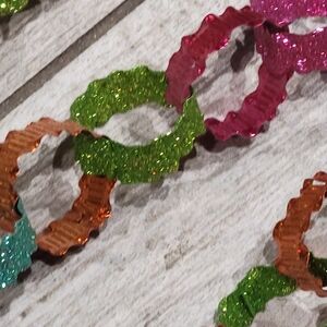This is a vintage metal tin wavy crinkle, glittery colorful garland.