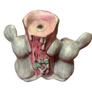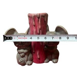 Vintage Christmas mice with a small vase or tiny candle holder. About 8in tall and in excellent condition.