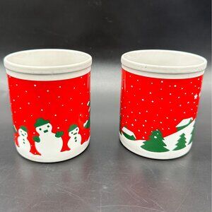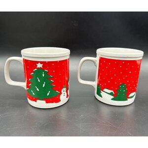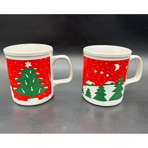 Vintage Christmas Mugs Set Of 2 Ceramic Japan Red Green White Coffee Coco Cups